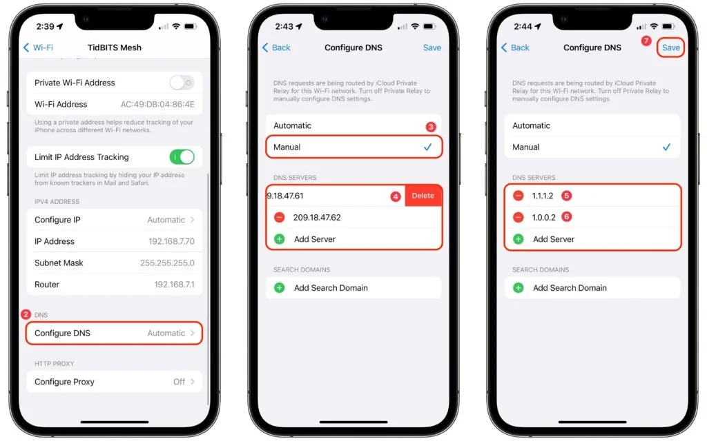 That’s it! You should have no trouble using either Quad9 or Cloudflare, but if you need to revert to your previous DNS servers, it’s easy to do. On the Mac, just delete the manual entries you created—macOS will automatically use the DNS servers provided by your ISP. On an iPhone or iPad, select Automatic in the Configure DNS screen to replace the manually entered DNS servers with those from your ISP. In either case, if you’re not going to use DNS filters, it’s worth turning on iCloud Private Relay. We hope that Apple adds DNS filtering options to iCloud Private Relay so you could additionally choose to filter out malicious sites and adult content.