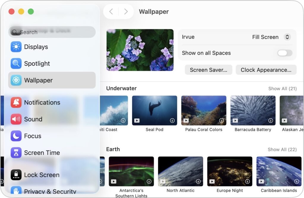 Sidebars: Although they’re less transparent than other items, sidebars become subtly tinted based on what’s under them. That occasionally results in some awkward overlays, such as in System Settings > Wallpaper, where the thumbnails can scroll underneath the sidebar.