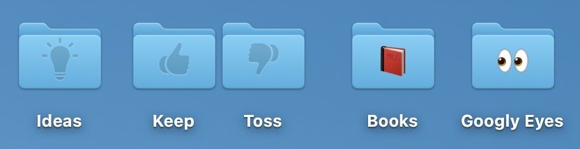 Customized folders: Folders start out blank, but you can Control-click one, choose Customize Folder, and pick an icon (monochrome) or emoji (colored) to brand the folder.