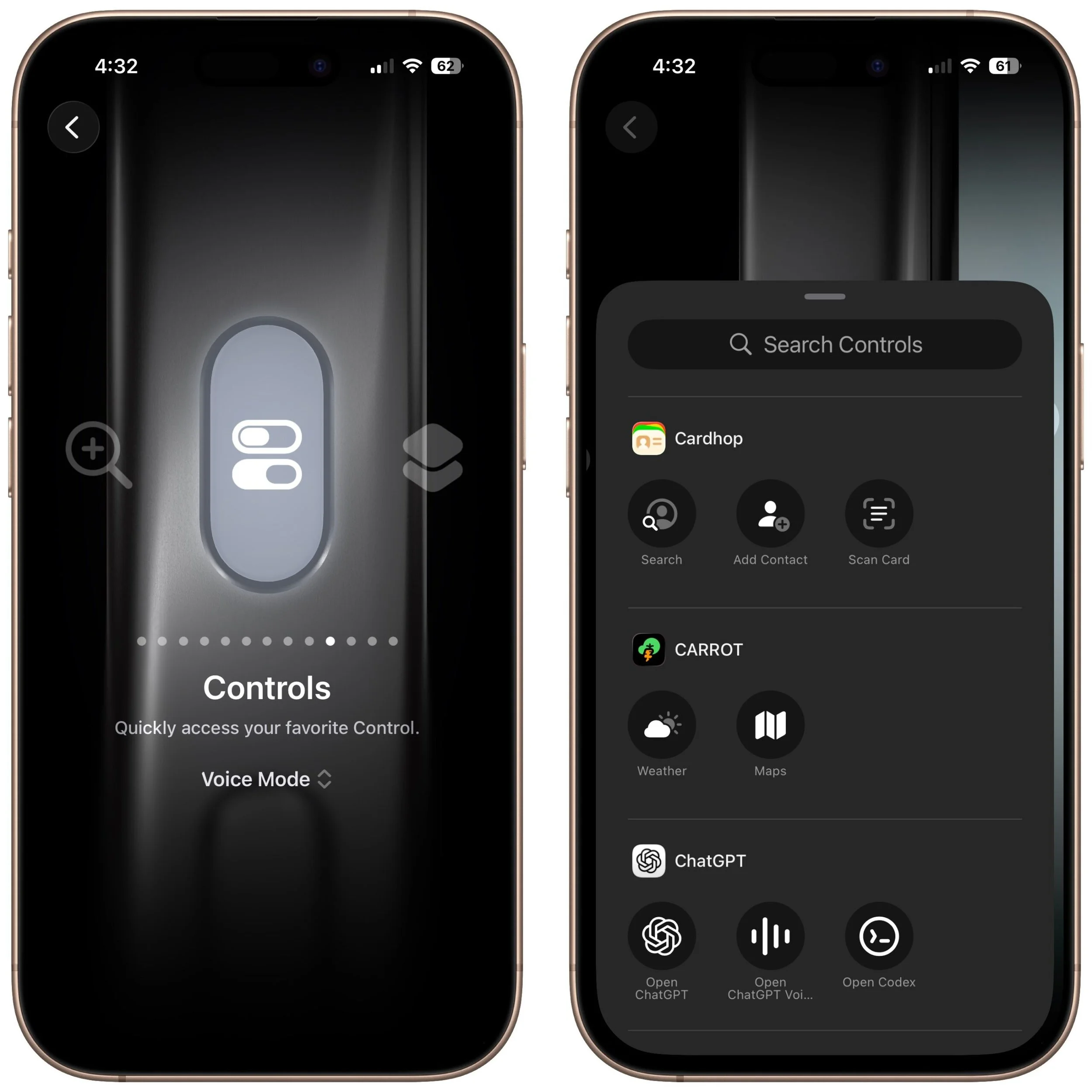 Controls: Invoke any Control Center control. Here’s where things get interesting! Starting with iOS 18, iPhone apps can create controls in Control Center. With the Controls option, you can choose any available control, so you could have the Action button start a ChatGPT conversation, add a task to TickTick, create a new event in BusyCal, or myriad other options. We strongly encourage you to scroll through the available controls to see if any catch your interest.